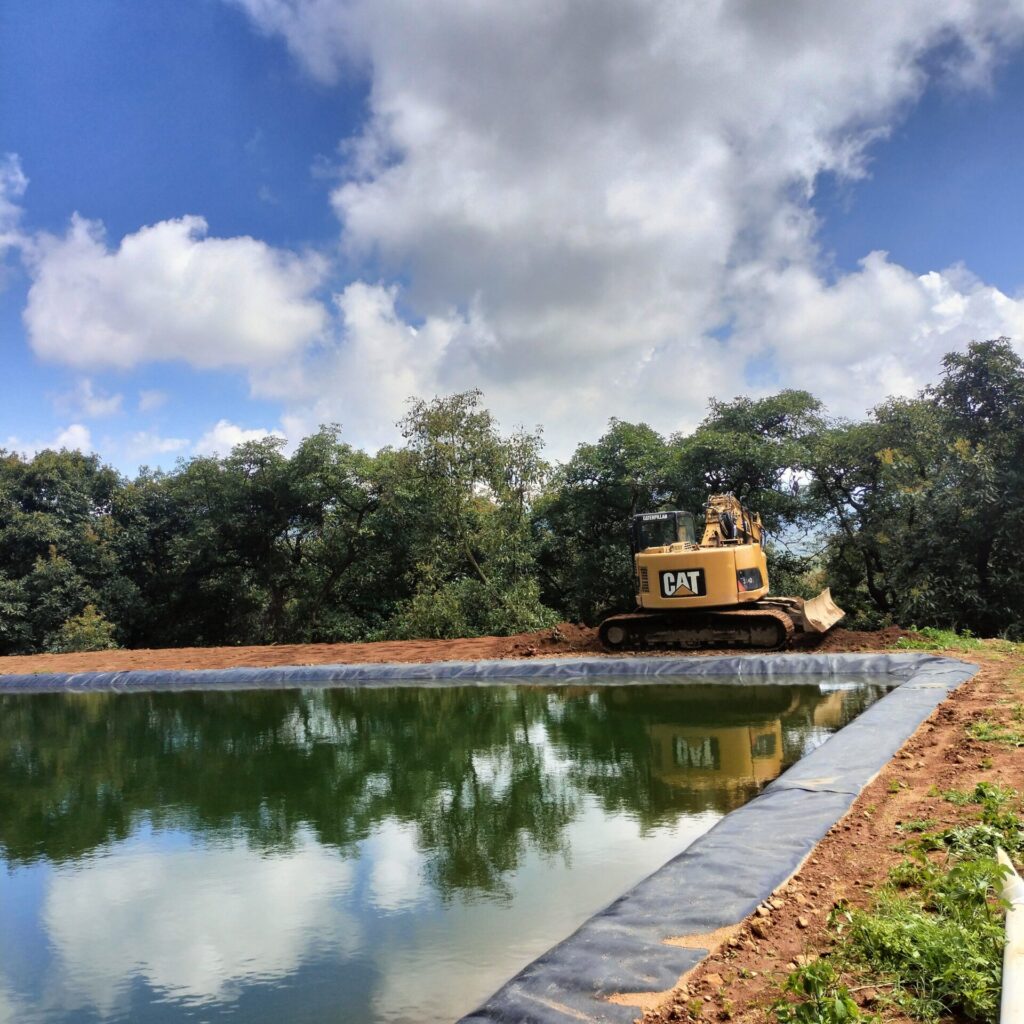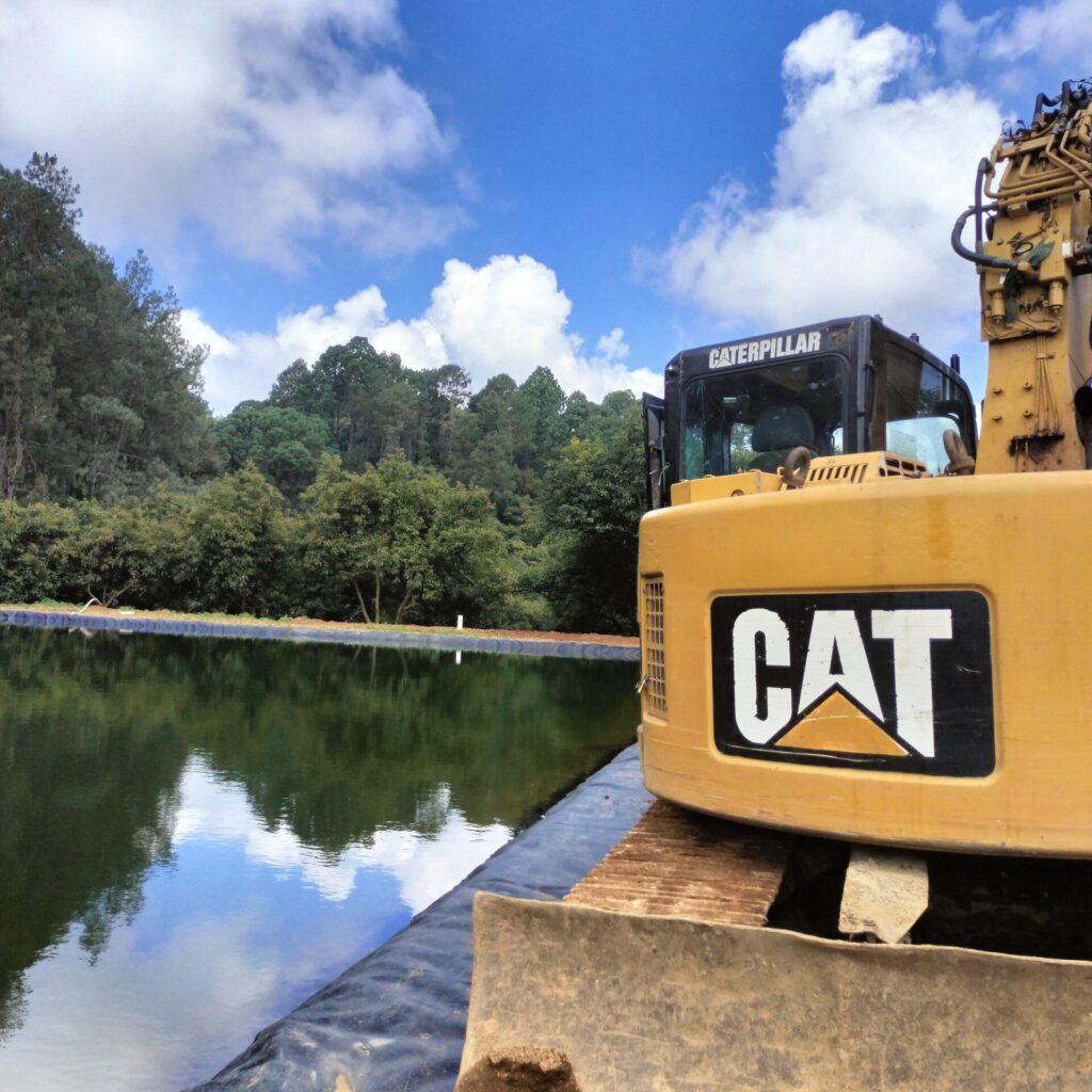 Construcción de ollas para almacenamiento de agua de riego o ganadería. Presas y Embalses recubiertos de geomembrana HDPE para almacenar hasta millones de litros.